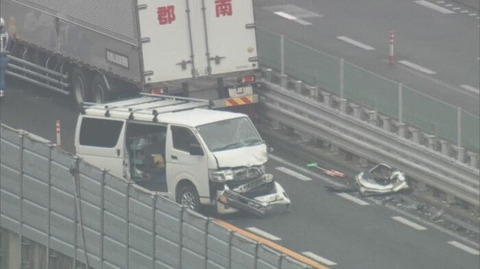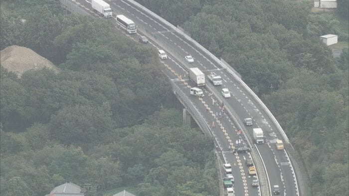 現場は中央道リニューアル工事のため、対面通行で最高時速50キロの規制があり、警察が事故の状況を詳しく調べています。