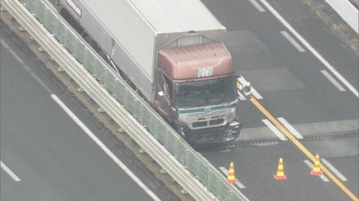 14日午前8時半ごろ、多治見市の中央道上り虎渓山パーキングエリア付近で、大型トラックや乗用車など3台が絡む事故がありました。