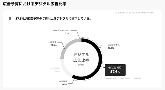 2025年上期の広告予算において、57.6%が「広告予算の7割以上をデジタルに投下している」と回答した。