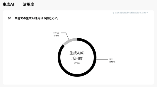 業務における生成AIの活用経験者は、回答者の約9割に上った。