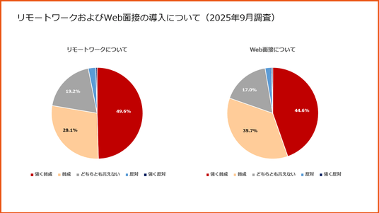 ・近年、出社回帰の傾向がありますが、リモートワークやWeb面接の導入については、約8割が賛成しています。