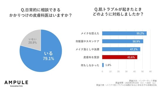 - 肌トラブル経験者の約8割が「かかりつけ医がいる」一方で、対処は自己流が多数…