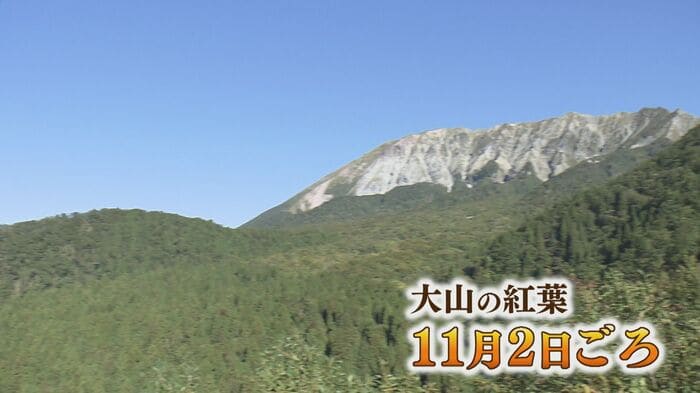 日本気象協会によると、大山の紅葉の見頃は例年並みの11月2日ごろと予想している。