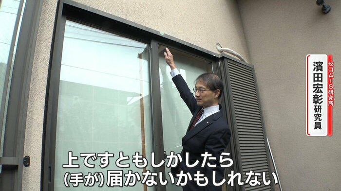 下ですとしゃがんで(窓を)割ればいいですけれども、上ですともしかしたら(手が)届かないかもしれない。あとは、こうやって手を上げて何か作業しているような風景というのは、通行人からすると「なんだあれは」となりますので。