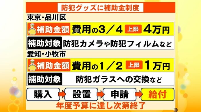 さらに、こうした防犯グッズは多くの自治体で、補助金制度が設けられています。