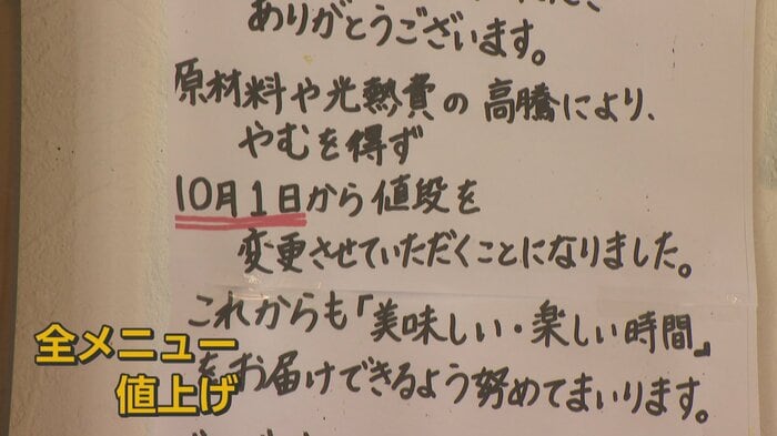 「今の状態としては価格に転嫁せざるを得ない状況になったが、店に来てもらっておいしいとか、楽しく過ごせる時間をスタッフ一同提供していくのでよろしくお願いします」