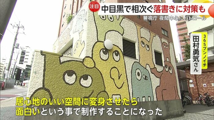 NPO(民間非営利団体)法人「365ブンノイチ」が許可を取ったうえで、落書きされた約80メートルの壁に地元住民と愛くるしいキャラクターを描く取り組みを進めている。
