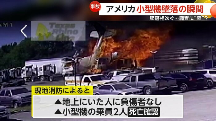 アメリカ・テキサス州で12日、小型機が駐車場のトレーラーに墜落し、激しい炎と黒煙が上がった。小型機に乗っていた2人の死亡が確認されている。