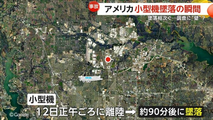 黒煙と共に激しく上がる炎。アメリカ南部・テキサス州で12日、小型機の墜落事故の瞬間を防犯カメラが捉えていた。