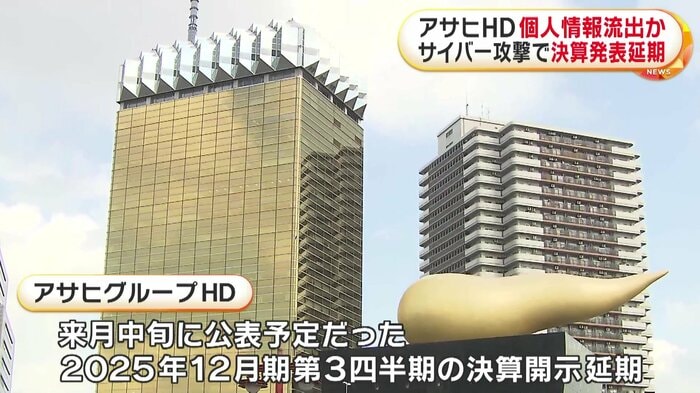 アサヒグループホールディングスは、11月中旬に公表予定だった2025年1月から9月までの(=2025年12月期第3四半期)決算開示を延期すると発表した。