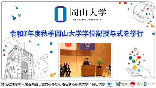 国立大学法人岡山大学(本部:岡山市北区、学長:那須保友)は、2025年9月25日、令和7年度秋季学位記授与式を本学津島キャンパスの創立五十周年記念館で執り行い、学部生・大学院生ら計202人が思い出深いキャンパスを巣立ちました。