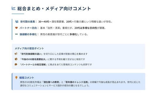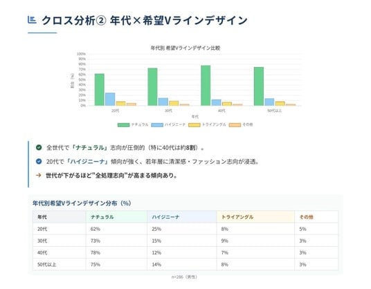 - 全世代共通:自然さや清潔感を重視する傾向が顕著