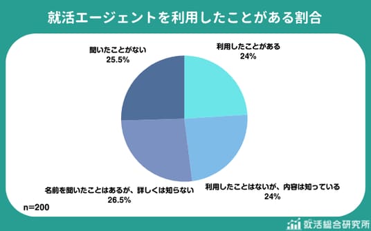 就活エージェントを「利用したことがある」学生は全体の24.0%にとどまりました。