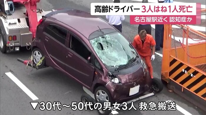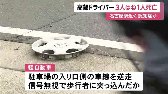 けさ、名古屋駅近くの交差点で認知症とみられる高齢のドライバーが運転する軽自動車が横断中の男女3人をはね、このうち女性1人が死亡した。