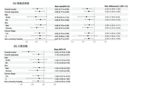 図2: 術後合併症リスクおよび入院期間に関する多変量解析