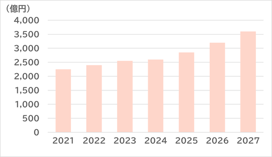 3Dプリンター材料市場は、熱可塑性樹脂や光硬化性樹脂、金属、セラミックスなど多様な素材が製品化され、各造形方式に応じフィラメント、液体樹脂、粉末状の樹脂や金属材料で提供されている。用途は航空・宇宙や自動車での軽量化部品、医療分野でのインプラントや臓器モデルまで広がり、家庭用プリンター向けの需要も存在する。2024年の市場規模は約2,600億円で前年比2%増と推定されるが、3Dプリンター本体市場の減速により成長率は鈍化した。樹脂が5割超、金属が4割程度を占め、欧米と中国が主要市場で、日本は規模が依然小さい。今後は3Dプリンター本体需要の回復や新素材の普及を背景に、2027年には大幅な拡大が見込まれ、堅調な成長が続くと予測される。さらに、多品種少量生産の進展や産業のデジタル化の流れも追い風となり、需要は裾野を広げつつ拡大すると考えられる。