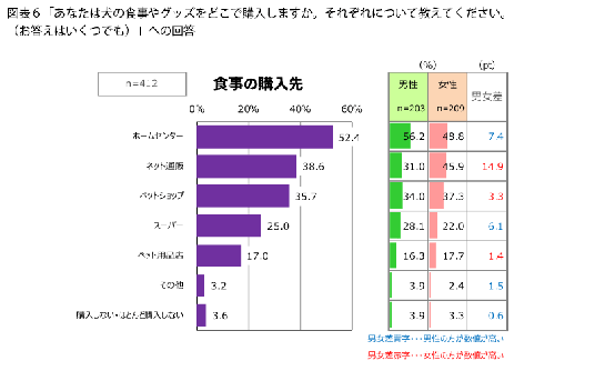 家族でペットを飼っている場合、ネットで注文する担当は女性、実店舗で購入するのは男性、というように、役割分担をしているのかもしれません。
