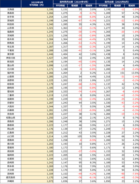 エン株式会社(本社:東京都新宿区、代表取締役会長兼社長:越智通勝)が運営する国内最大級の総合求人サイト『エンゲージ』(https://en-gage.net/)で、2025年9月度の「全国アルバイト・パート募集時平均時給調査」をまとめましたので、ご報告致します。