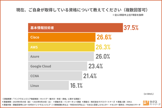 最後に、インフラエンジニアはどのような資格を取得しているのか、詳しく見てみましょう。