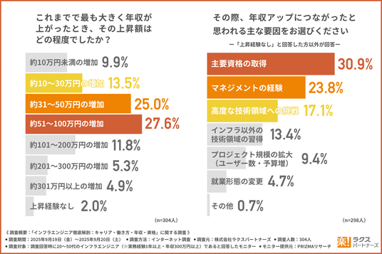 ・年収アップの主因は「資格取得」、続いて「マネジメント経験」「高度な技術領域への挑戦」が上位