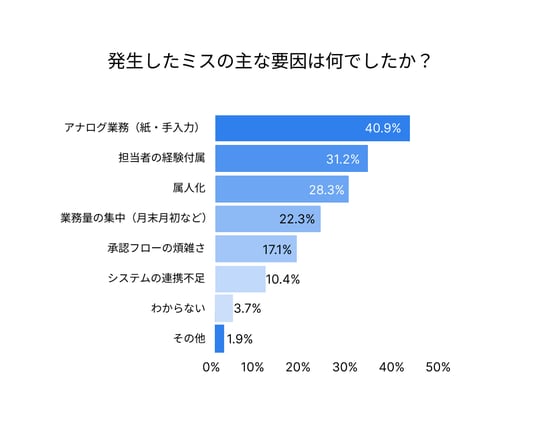 発生したミスの主原因の40.9%が「アナログ業務(紙・手入力)」と回答