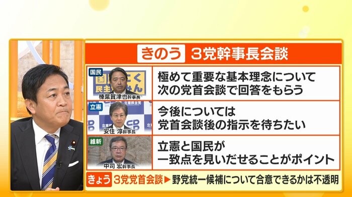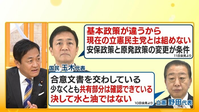 公明党の連立離脱により自民党が揺れる中、野党第一党である立憲民主党から、「国民民主党の玉木雄一郎代表も有力な選択肢」という言葉が出るなど、玉木氏を野党統一候補にする案も…。
