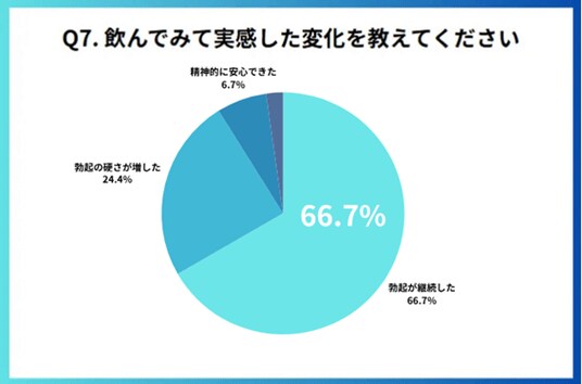 ・バイアグラ服用で実感が多かった変化に「勃起が継続した(66.7%)」と回答