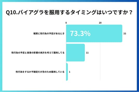 ・バイアグラ服用タイミングは「確実に性行為の予定があるとき」が73.3%