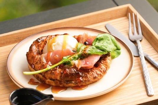「OND CAFE」では、ダッチパンケーキやチキンカレー、オリジナルブレンドコーヒーやアルコールなど、他では味わえないこだわりのメニューを提供。大開口の窓を備えた40席の店内では、豊かな緑を感じながら食事や会話を楽しめます。