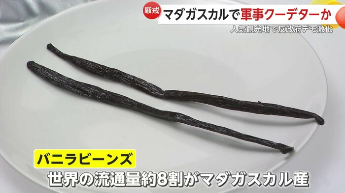 また、アイスクリームやプリンなど、お菓子づくりに欠かすことのできない甘い香りのバニラビーンズはマダガスカルの名産で、世界の流通量のおよそ8割がマダガスカル産だ。