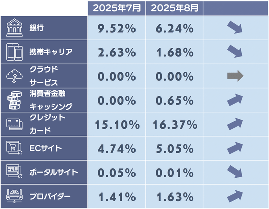 東京電力(TEPCO)を騙るフィッシングサイトが急増し、前月比で4.7倍となりました。メールやSMSなどで「支払いの確認」や「未払い」を装いフィッシングサイトへ誘導する手口です。今年の8月は記録的猛暑でエアコン利用が不可欠となった時期であり、利用者の不安心理を突いた詐欺の可能性もあります。他の電力会社を装ったフィッシングサイトは確認されませんでしたが、利用者の多いインフラサービスでもあることから、引き続き警戒が必要です。