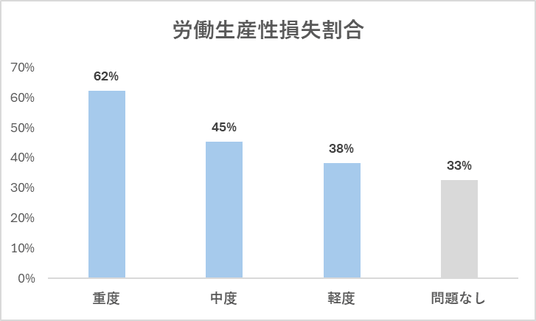 ■男性更年期の症状レベルが重度の人は、軽度の人に比べ労働生産性が約24ポイント低い