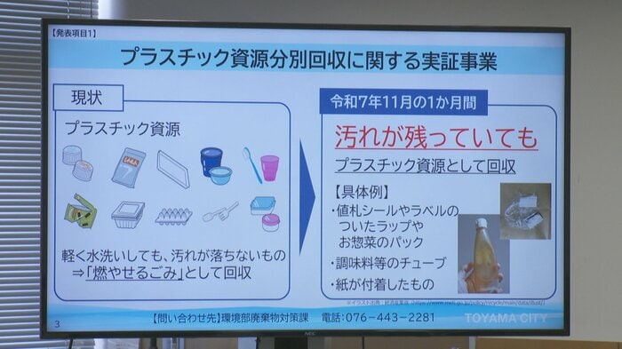 富山市は来月、大山地域を対象に、これまで「燃やせるごみ」として処理していた汚れが残るプラスチック容器を「プラスチック資源」として回収する実証事業を実施する。15日に行われた富山市の定例会見で藤井市長が発表した。