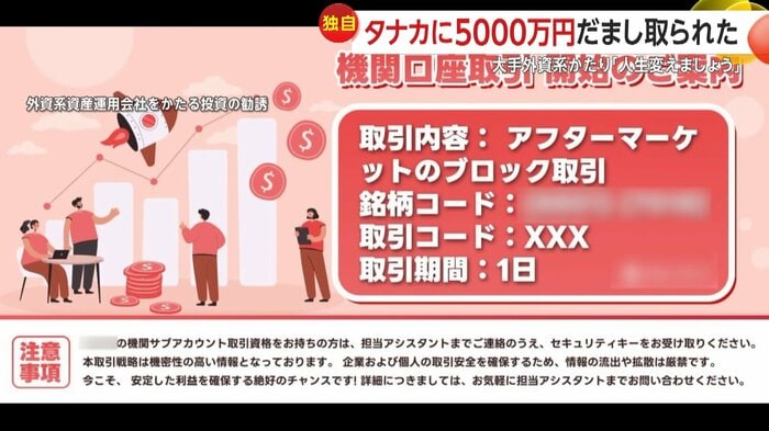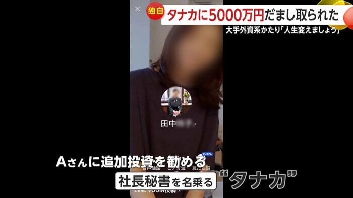 Aさんに追加投資を勧めていたのは、社長秘書を名乗る“タナカ”という女性。