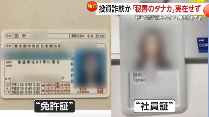 しかし、タナカは「秘密プロジェクトだから会社に電話しても『そういう人間はいない』と答える。私は在宅で仕事をしている」と主張し、社員証と免許証の画像を送ってきたという。