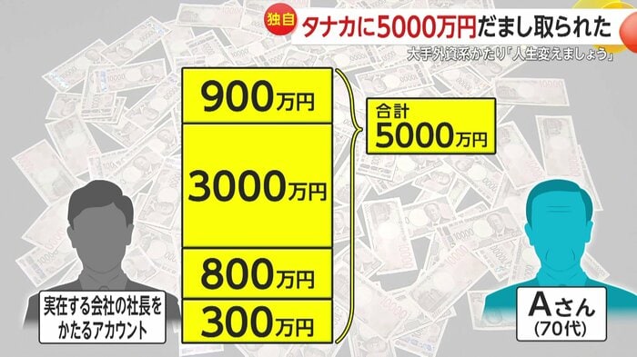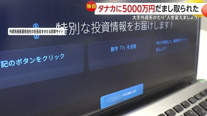 現在、返金を求めているが、タナカは“返金手数料”などとしてさらに数百万円を振り込めと要求し、返金に応じていないという。