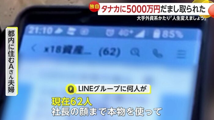 現在62人。社長の顔まで本物を使って、その中に半分以上サクラが入っていると思うんですけど。毎日「何百万もうかりました」で、「Aさん300万円(の投資)じゃダメだよ」と。