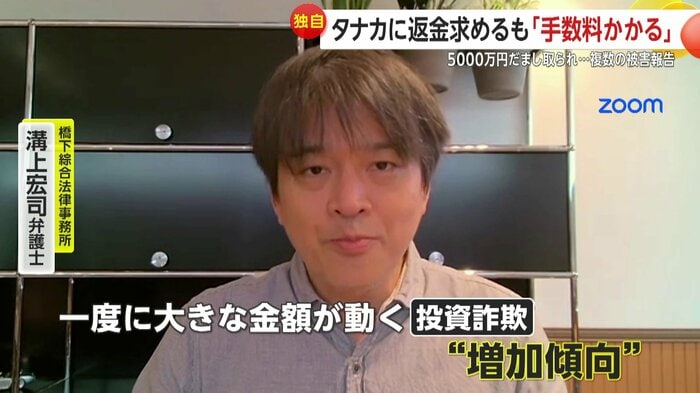 専門家は、一度に大きな金額が動く投資詐欺は増加傾向にあると指摘する。