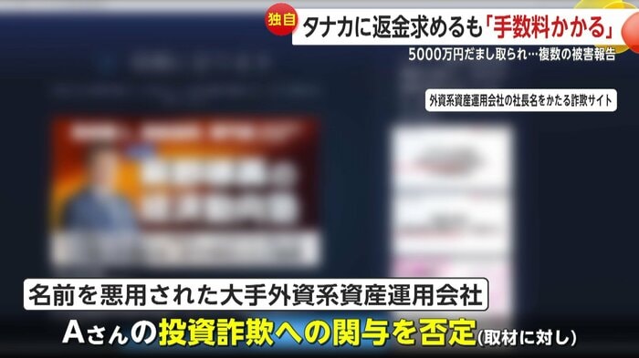 名前を悪用された大手外資系資産運用会社は「イット!」の取材に対し、Aさんの投資詐欺への関与を否定。