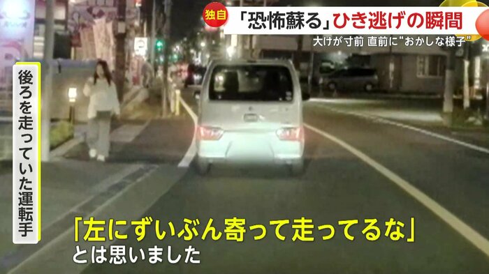 ひき逃げした車の後ろを走っていた運転手は、事故直前の運転におかしな点があったと話す。