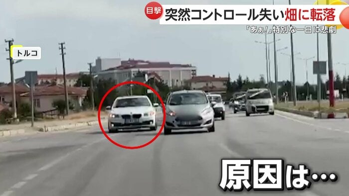 先頭を走っていた車が道路を外れ、飛び出すように斜面へ突っ込んだ。乗っていた人は無事なのだろうか?