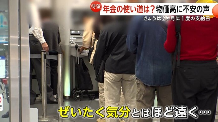 年金支給日の15日、ATMには多くの高齢者が列をなした。しかし取材では、年金受給者から「物価高で生活が苦しい」「年金だけではやっていけない」といった切実な声が相次いだ。