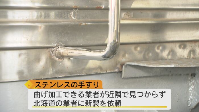 しかし、ステンレスは一回、形が変わったのを叩き出すともろくなる。へこんだ車体は小型のジャッキで何とか内側から押し出せたが、潰れてしまった2本の手摺りの交換は困難を極めた。