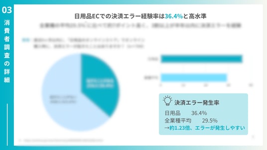 - 日用品ECの決済エラー経験率は36.4%