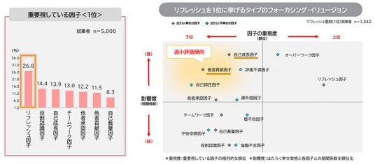 7. フォーカシング・イリュージョン(焦点化錯覚):就業者の26.8%は「はたらく幸せ/不幸せの7因子」の中で「リフレッシュ因子」が最も重要だと回答。この群は他因子を低く評価し、リフレッシュ因子を過大評価する傾向が確認された。