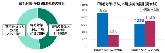 両者を合計すると薄毛対策・予防における市場規模は推計5137億円となる。