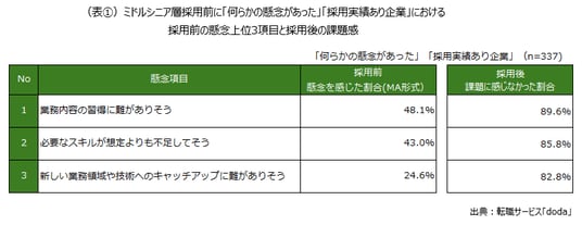 ~採用前の懸念として「業務内容の習得」や「スキル不足」などが上位に挙がるも、8割以上は採用後「課題に感じなかった」ことが明らかに~