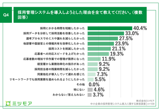 ■ 採用管理システム導入を検討した理由は「採用にかかる時間を短縮したかった」が40.4%で最多