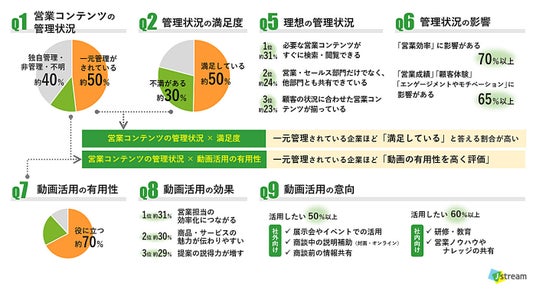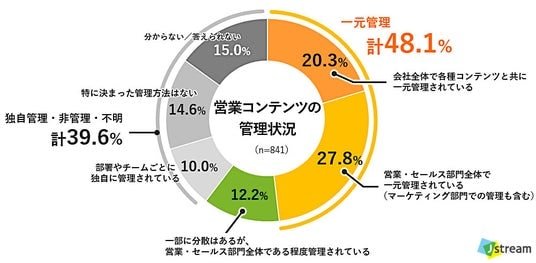 株式会社Jストリーム(東証グロース:4308 代表取締役社長:石松 俊雄、以下Jストリーム)は、営業コンテンツの管理状況に関する調査を実施しました。本調査で定義する「営業コンテンツ」は、営業活動において活用されるカタログ・資料・動画・事例・提案書などを指します。動画は、営業力強化の手段として注目されています。