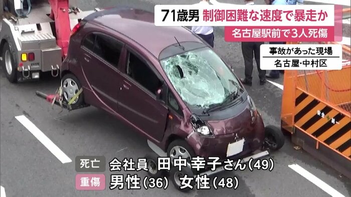 愛知・名古屋市で71歳の男が運転する軽自動車が暴走し、3人が死傷した事故で、男は車の制御が困難なほどの速度で3人をはねたとみられることが分かった。